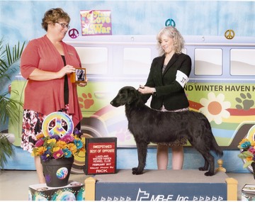 Bean is a great combination of both his parents. He is very easy to live with and enjoys hanging out. He is definitely not the most active dog in the house. He does like to train and has that boy scout attitude. He finished easily out of the BBE class. He was RWD at the 2018 FCRSA national.